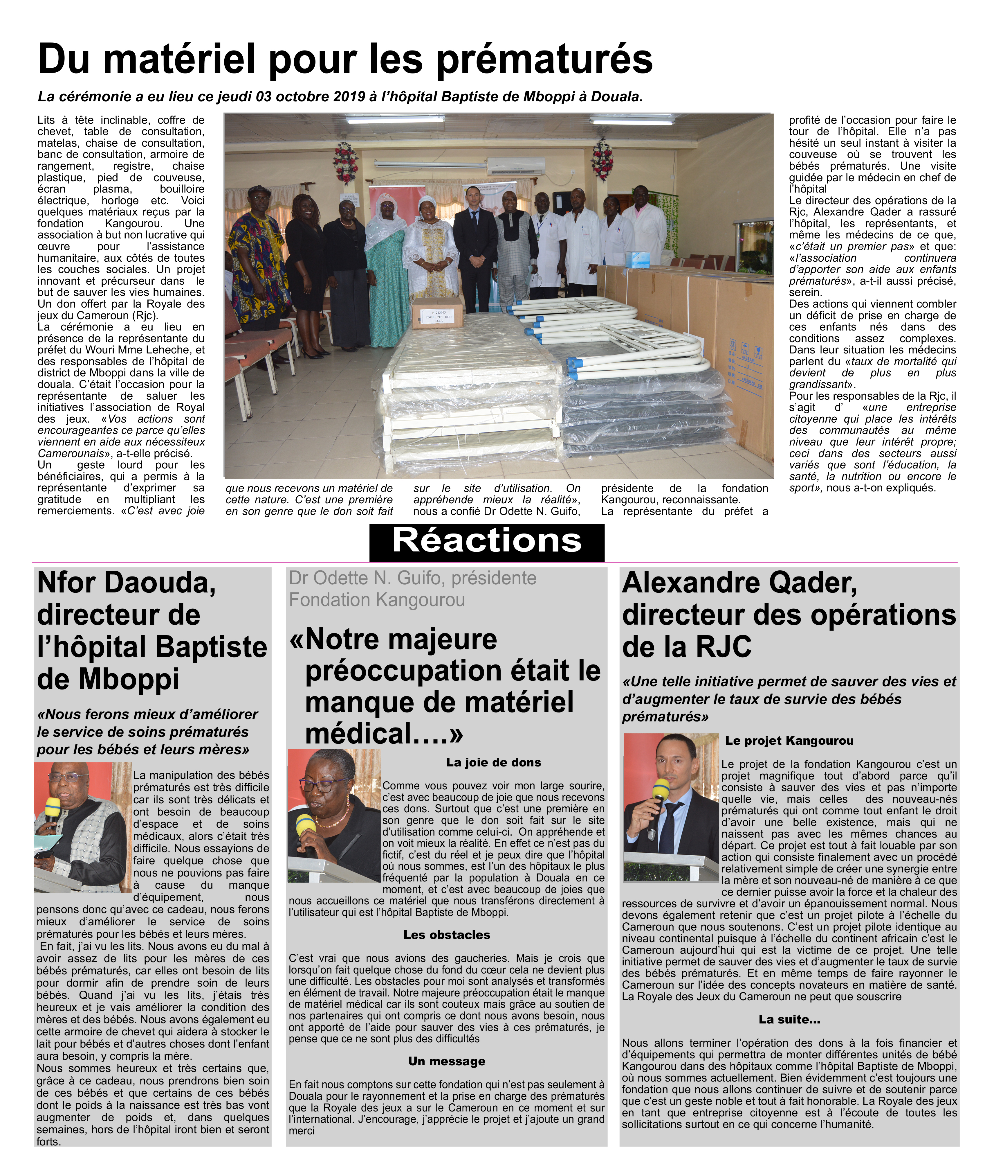 CÉRÉMONIE DE REMISE DE MATERIELS ET EQUIPEMENTS MEDICAUX A LA FONDATION KANGOUROU CAMEROUN par admin · 8 octobre 2019
