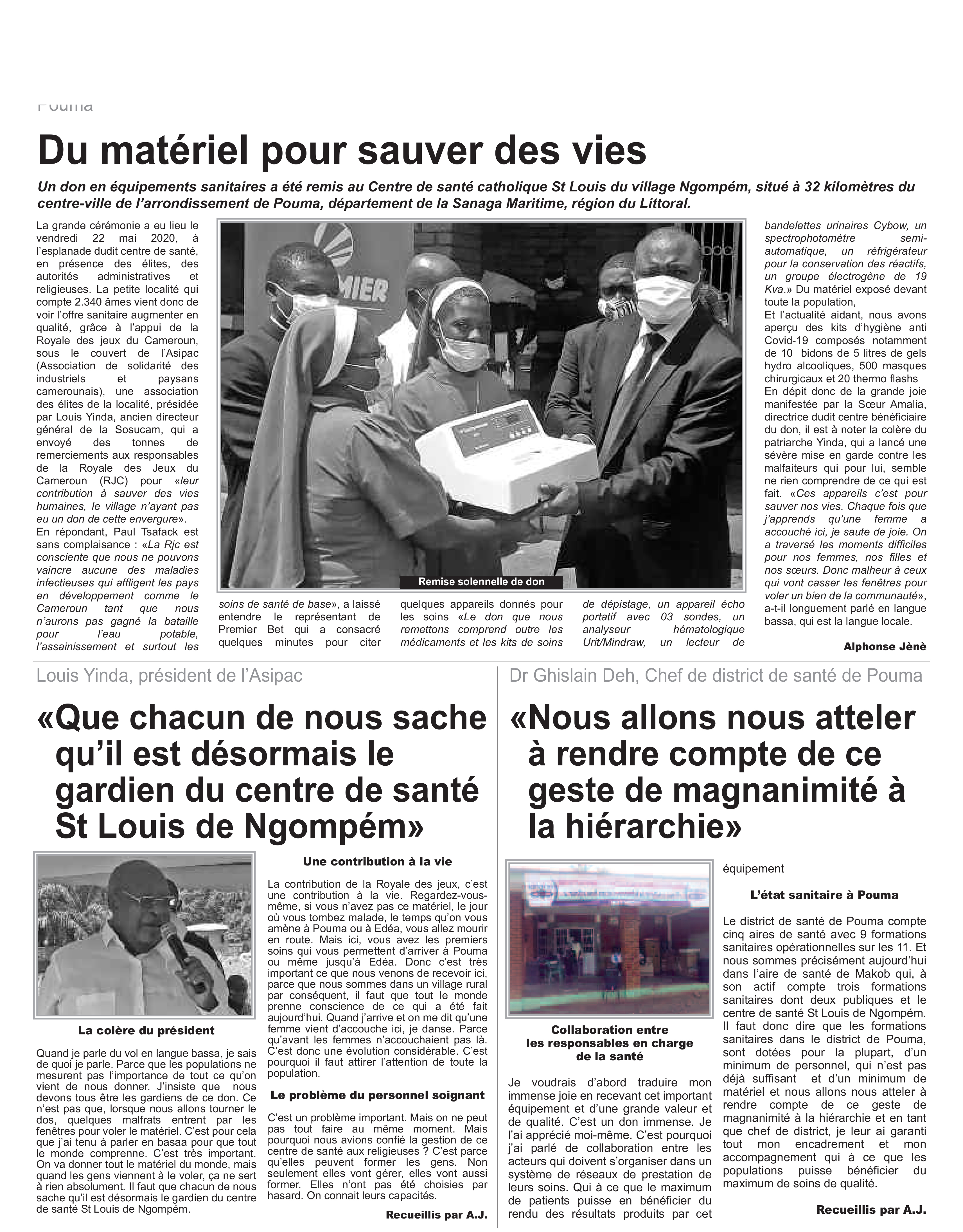 Un don en équipements sanitaires a été remis au Centre de santé catholique St Louis du village Ngompém, situé à 32 kilomètres du centre-ville de l’arrondissement de Pouma par admin · 14 juin 2020